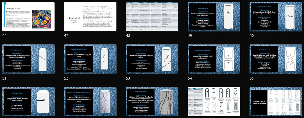 - Stress and Crack Types: Oblique, brittle, ductile, transverse, and radial cracks.